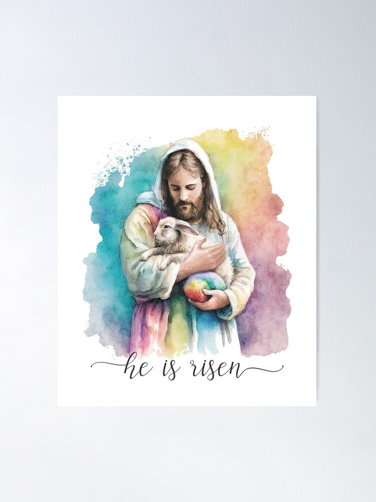 Das hochwertige Vinyl-Material zeigt das Motiv in lebendigen Farben und hoher Auflösung. Das Design mit Jesus, Kreuz, Blumen und Kaninchen ist perfekt für christliche Feiern, Ostern oder Frühlingsfeste.