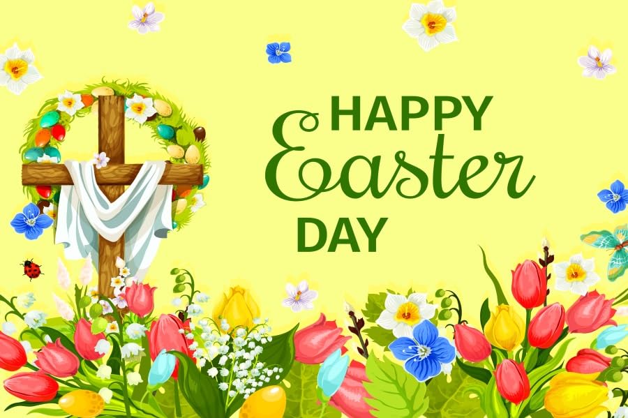 Schaffe eine festliche Oster-Atmosphäre mit diesem wunderschönen Hintergrund im Design \He is Risen\! Mit 210x150cm bietet er genug Platz für Fotos mit Familie und Freunden oder zur Dekoration bei Osterfeiern.