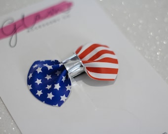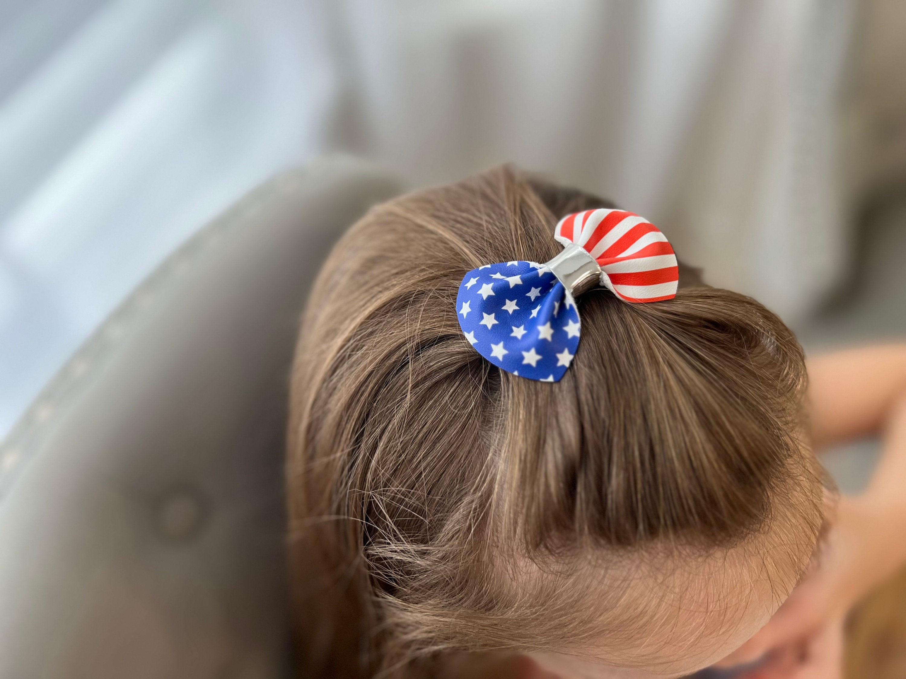 Zeig deinen American Spirit mit diesen entzückenden patriotischen Haarschleifen! Im typischen Rot-Weiß-Blau-Design mit USA-Flaggen-Motiv sind sie perfekt für den 4. Juli, Unabhängigkeitstag oder jede andere patriotische Feier. Jede Schleife misst 10,2cm und ist handgefertigt aus hochwertigem Ripsband. Die stabilen Krokodilklemmen halten sicher im Haar - selbst bei feinem Haar oder bei Bewegung. Super für Mädchen, Teenager und Frauen jeden Alters. Ob zum patriotischen Outfit, für Paraden, Familienfotos oder einfach nur für den Alltag - diese Schleifen verleihen jeder Frisur einen festlichen Touch. Wunderschön verpackt eignen sie sich auch perfekt als Geschenk für alle, die Amerika lieben. Leicht und bequem zu tragen, verursachen sie keine Irritationen - selbst wenn sie den ganzen Tag getragen werden.